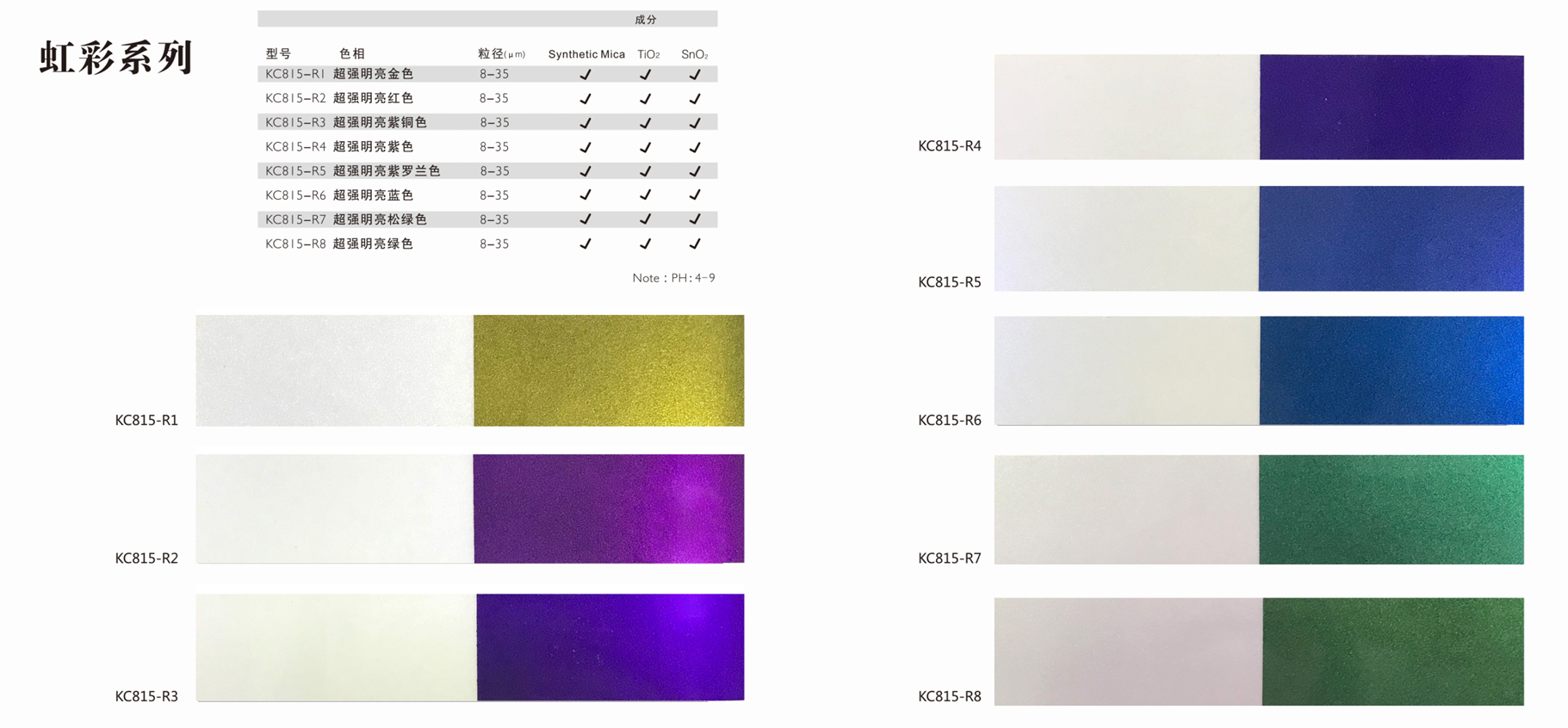 水晶龙系列珠光颜料具有超高的色彩饱和度,明亮耀眼的超强闪烁感,精密的包膜工艺,优良的分散性能。