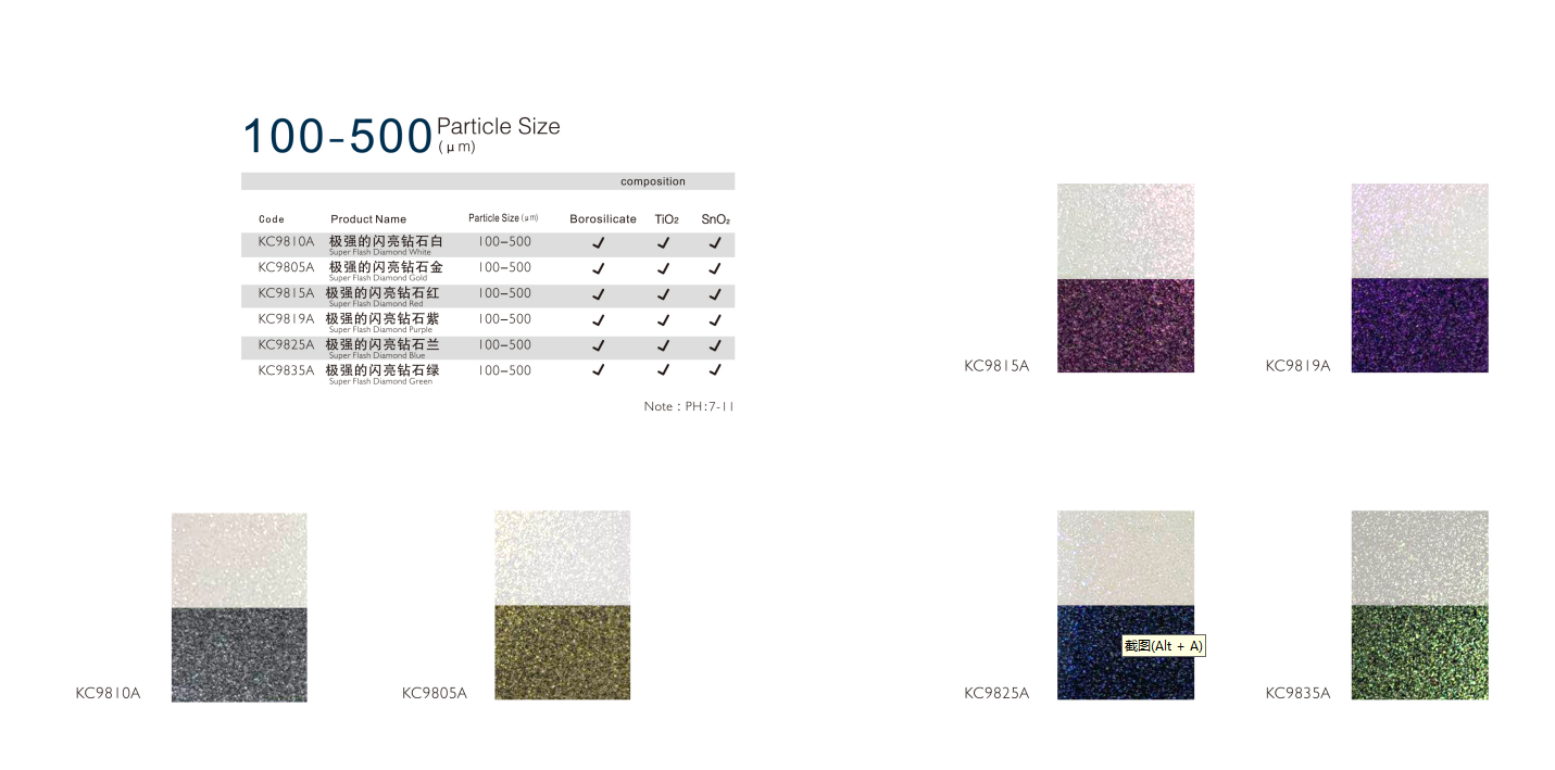 KC9810C   很强的闪亮钻石白  粒径:(20-100)µm